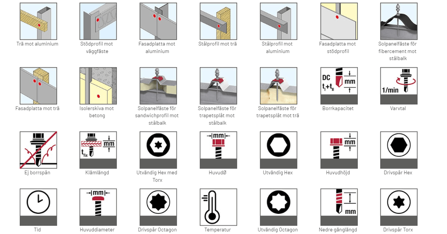 I denna guide hittar du hur de olika delarna på skruven benämns och varför skruvar för olika material ser ut som de gör.