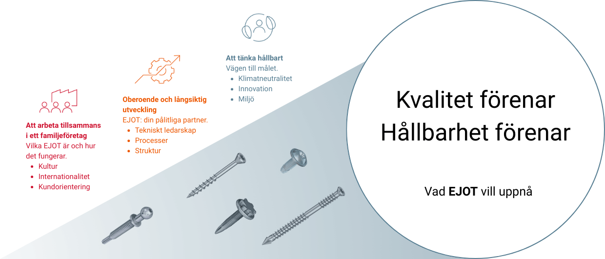 Klimatförändringarna är en av vår tids största utmaningar – och vi på EJOT tar oss an den. Som ett internationellt aktivt familjeägt företag har vi satt upp det ambitiösa målet att bli klimatneutrala senast 2035. Med en tydlig hållbarhetsstrategi, innovativa produkter och ett starkt fokus på energieffektivitet och miljöskydd driver vi denna ambition framåt inom EJOT-gruppen.